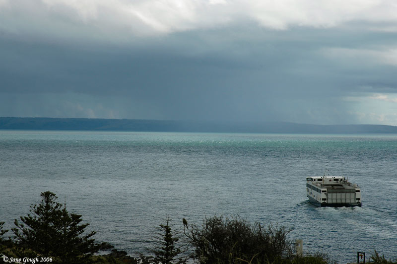 It was then onto Cape Jervis. The only view we had of Kangaroo Island was under a shower of rain!