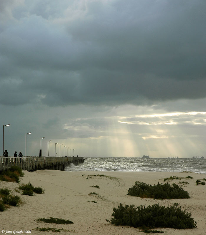 Semaphore Beach on the way home. Managed to capture this beautiful scene as I was sand blasted and sprayed with salt water! It was freezing.....but well worth the effort!