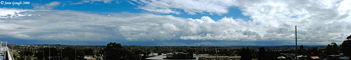 The rain eased off slightly and I drove to a sports oval in Chadstone which has good views towards the West, and photographed the base overhead before the torrential rain began again.
