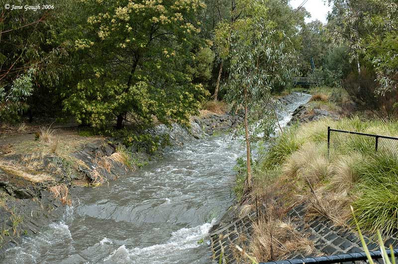 I then drove through the deluge to Scotchmans Creek in Oakleigh which is notorious for breaking it's banks in a sudden downpour. I could hear static on the radio, but failed to see any lightning or hear any thunder....the roar of the rain took care of that!!