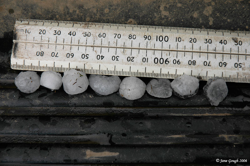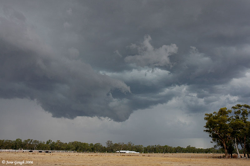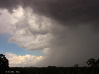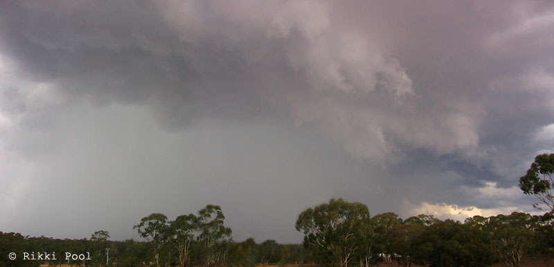 The following 3 images were taken by Rik Pool from Strathfieldsaye between 1:58 and 2:05pm, showing the structure and rain shaft of the cell we encountered the above hail from, and the one shown on radar.