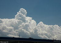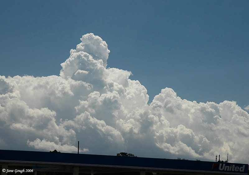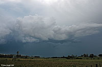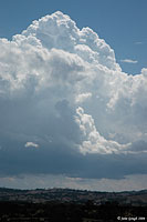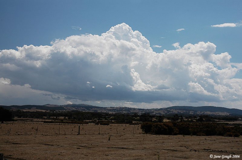 At 1:40pm, we stopped in Kilmore to fill up the car and noticed the roads were slightly damp from the previous cell, and also fresh updrafts on the Northern side of the Macedon cell. They were quite pulsy though, and no sooner had one tower gone up that a few minutes later it had lost it's crispy defined shape and flattened out. It certainly kept on trying though!