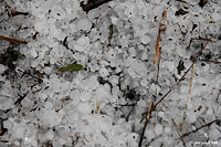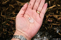 We turned off the FWY to the East and drove down Sheltons Road in the Spring Gully region. We encountered a fair amount of fresh leaf litter on the road and eventually pulled over at 3:30pm to find hail drifts. Looking around we discovered some stones, measuring just under 2cm. Considering the cell went through the area at approximately 2:16pm (according to the radar) , it is possible these stones could have been larger. As we were walking along the side of the road, distant rumbles from the next approaching cell could be heard, as well as some weak mammatus forming overhead. A good sign of things to come! The radar frame below is courtesy of the BoM and Strike One. It shows the 'Bendigo hailer' in approximately the position we were when we discovered the hail drifts, and also at it's most intense returns.