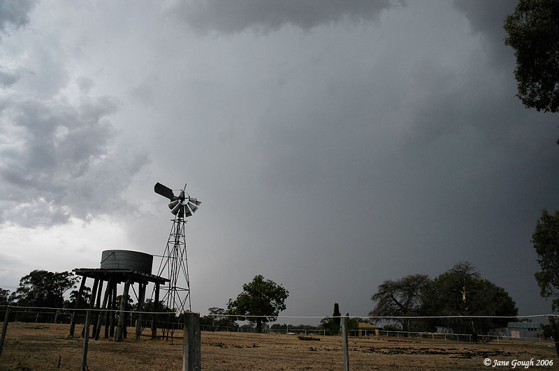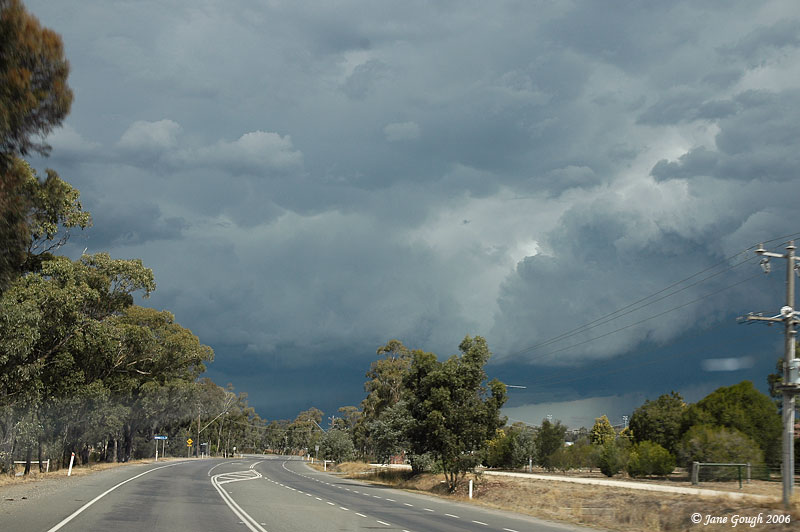 As the storms retreated towards the East, we stopped off at the Lancefield turn off of the Calder FWY at 6:00pm to gain a better view of the back end and the rain shaft.