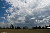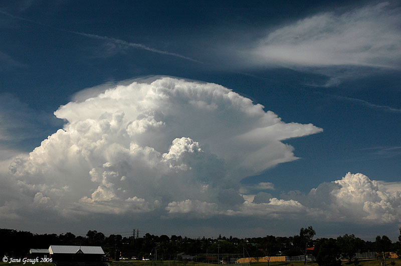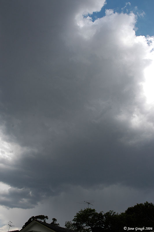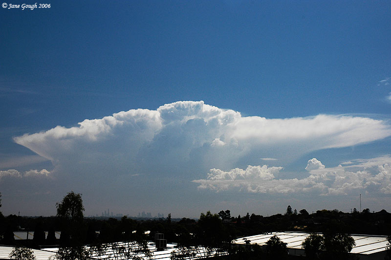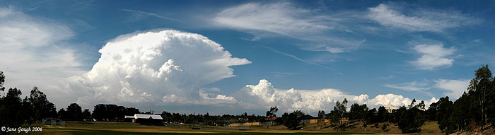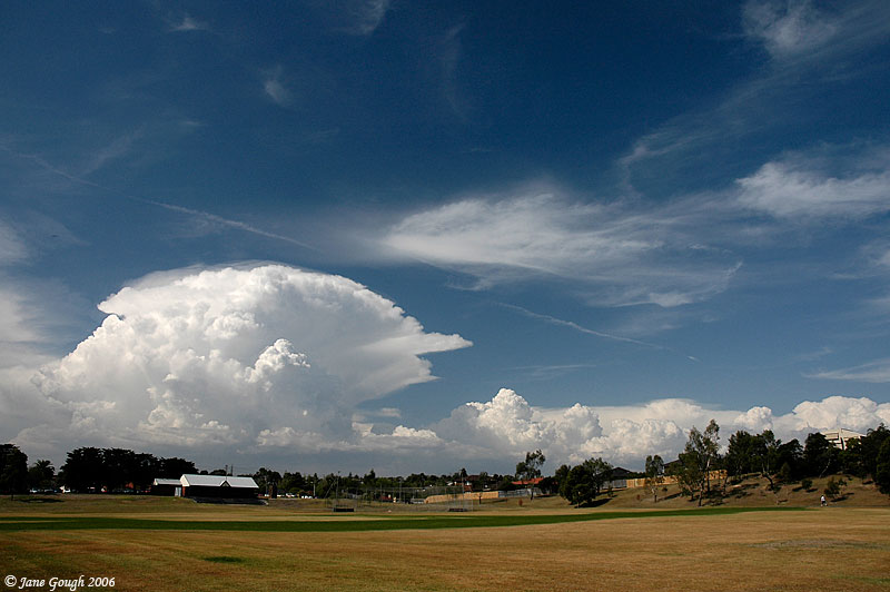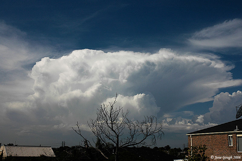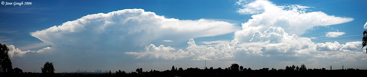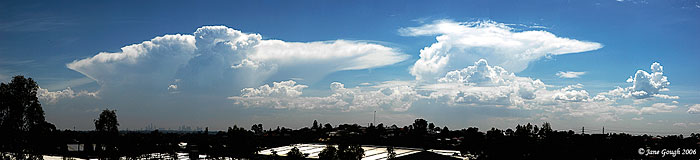 On wednesday the 14th a storm developed over the Ballan area in the early afternoon, and was clearly visible from a local lookout approximately 80km away. These images were taken just before 2pm and looking towards the NW across the city, and I have adjusted the contrast to show the cloud structure through the haze.