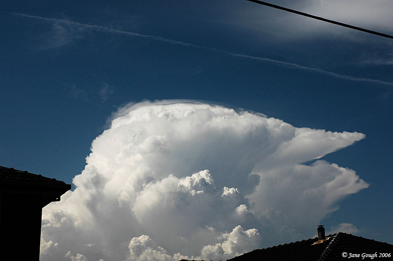 There was also signs of decent convection across the NE Ranges past the Yarra Valley. I headed up to Doncaster Shoppingtown rooftop car park for a better view. I was very disappointed to learn the view across the city to the west has been closed off due to construction, but I was still able to see towards the NE. The CU wasn't really getting organised or increasing in size whilst I was there, and due to the heat I decided to return home. Below is the last image I took while I was up there, followed by what developed soon afterwards towards the Kinglake area, so it was back to the lookout I had been to earlier to photograph the developing anvil.