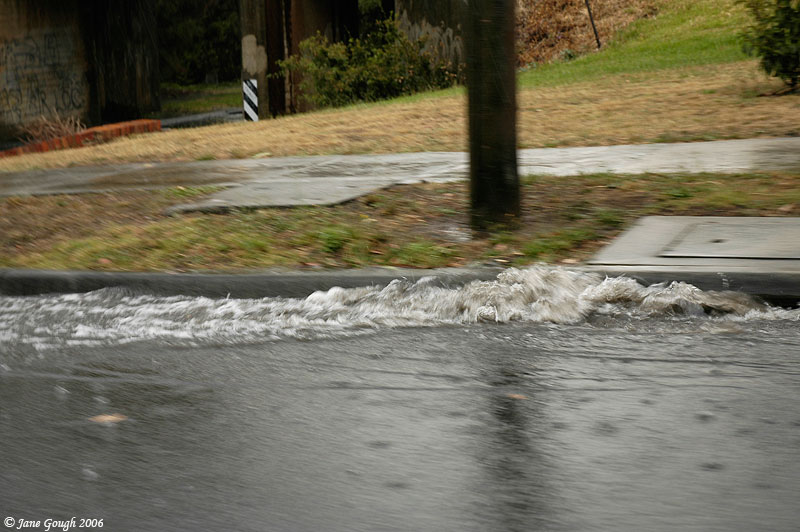 I turned right into Blackburn Rd from High Street Rd. The traffic lights were playing up and flashing due to very close lightning. There was one strike within 100m near Syndal Station which made me thankful I was safely in my car and not waiting at the bus stop under an umbrella like the poor sopping wet commuters attempting to get home! I made my way through side streets back to Mt Waverley and encountered flash flooding in several streets from gutters that simply could not cope with the torrents of water.