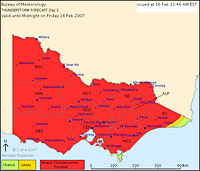 Above thunderstorm forecast, chart and warning courtesy of the BoM.