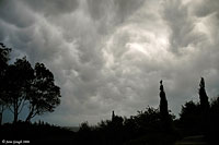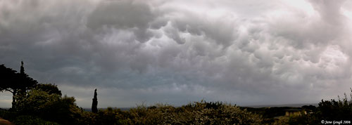 Whilst down at Flinders for a few days an amazing mammatus display formed overhead. It preceded a cold front after a 30.1°C day in Melbourne. It reached 29.1°C on my Weather Station. It was the fourth time that the temperature had reached 30°C in September since records have been kept for the past 150 years, and the earliest Melbourne has experienced a 30°C day before Summer. The cold front brought strong winds including 128km/h gusts at Mt Hotham, but unfortunately very little rainfall. I had 9mm at Flinders, and 1.5mm at home. The strong northerly winds during the day also brought about a few fires across the state including one near Kyneton and another near Healesville.
