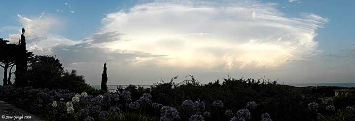 A huge Plume of smoke from the Anakie bush fires over 70km away, on the other side of Port Phillip Bay, drifted across Flinders and beyond carried by a North West wind. The sun cast a distinct orange glow on the ground, and the plume had quite an eerie look about it.
