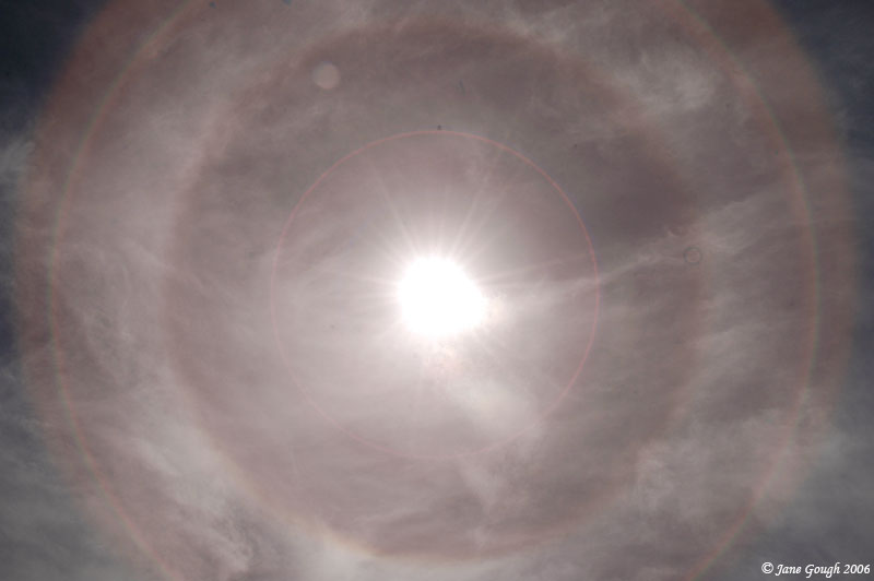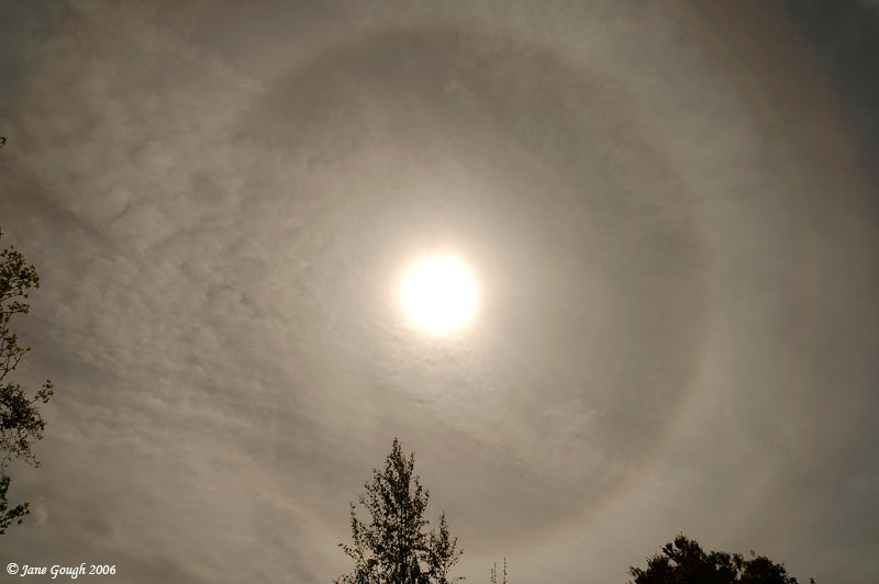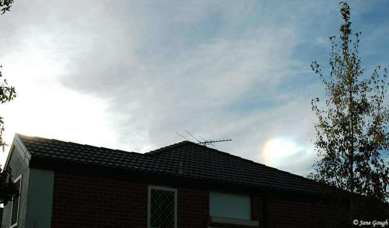 As luck would have it, I was collecting the washing when I noticed a sun dog to the right of the sun. Apparently, there was one on the left as well, but trees and houses, unfortunately, hampered my view.