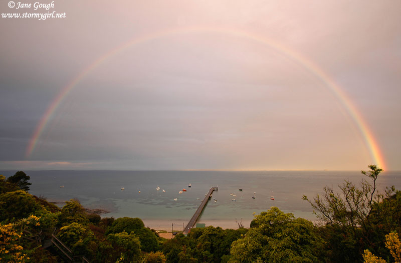 This rainbow was taken on a recent trip to Flinders, after a late afternoon shower on the 26th. I was able to capture the whole bow with my 10mm wide angle lens.