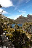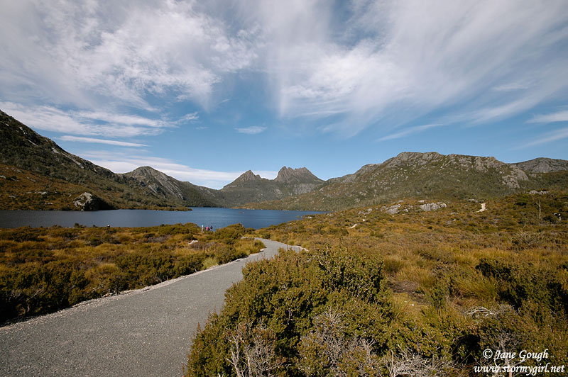 Since we had already purchased a National Park Pass on the 'Spirit', we by passed the Visitors Centre and headed towards Dove Lake. We did stop off quickly at the Ronny Creek Car Park to take in the views and a few photos! The weather couldn't have been better for a walk in this most remarkable Tasmanian World Heritage Area.