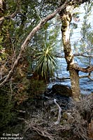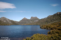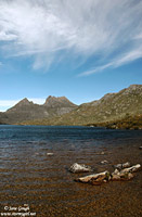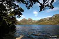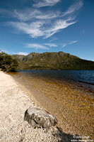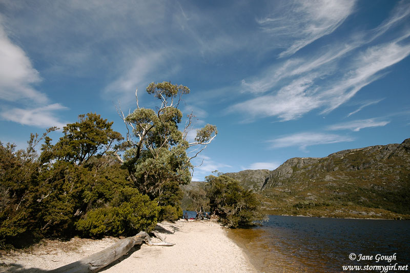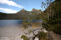 We managed to get one of the last car parks available by Dove Lake, registered our walking details, and headed off at 10:35am in an anti clockwise direction around the beautiful Dove Lake Circuit. The walk's suggested completion time is between 1-2 hours, and is approximately 6km in distance. Cradle Mountain itself was named by Joseph Fossey in 1827, after it's resemblance to a baby's cradle. The mountain consists of dolerite, was formed some 10,000 years ago from glaciers, and is 1545m asl. Throughout our journey we encountered Glacier Rock (formally Suicide Rock), beautiful beaches, the small Honeymoon Island at the southern end of the lake, Pandani, button grass plains, Fagus, Pencil Pines and Sassafras trees, the beautiful moss covered trunks in the Ballroom Forest, and the famous boat shed. The Pandani is the world's tallest growing heath plant and is found only in Tasmania. They can grow in the rainforests and sub-alpine areas. Like the Pandani, the deciduous beech, or Fagus, is also native to Tasmania, and is quite rare. Unfortunately we were slightly early in the season to see it's changing colour in full hue, but managed to spot a few yellowing leaves.