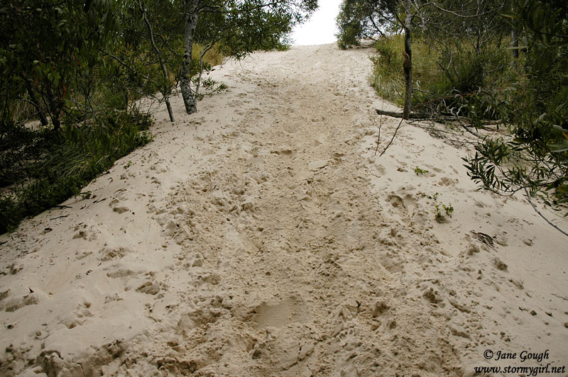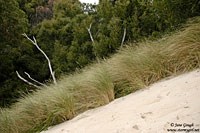 After a brief stop for lunch in the visitors centre, we unfortunately had to bid farewell to this stunning area as we had a fair drive to Strahan for our next nights stay. We called in to Zeehan, an old Silver-lead mining town, to stretch the legs, then onto Strahan via the Henty Sand Dunes. Lying between a Pine Forest Plantation and the Southern Ocean are the massive moving dunes. At the carpark we were faced literally with a wall of sand roughly at a 45 deg angle to climb (first 2 images below!). This was not an easy feat! Once on top of the giant sand dunes, we could see all the way to the ocean, a view only interrupted by more sand and the odd piece of drift wood, grasses or small coastal shrubs.