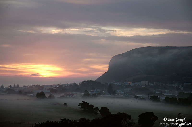 knowing we had a busy day ahead, we woke up early. Our reward was a gorgeous foggy sunrise over Stanley and The Nut. The fog hugged the valleys and pastures for some time as we made our way to Cradle Mountain National Park, our first destination for the day.