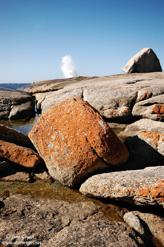 Bicheno, the popular holiday destination, was the perfect place for lunch by the Waubs Beach boat ramp. This quaint little town was once used for whaling, sealing and coal mining, but now is popular for fishing, diving and crayfishing. Such a peaceful time was spent ambling around the beaches on red lichen covered rocks and watching the spectacular blowhole.