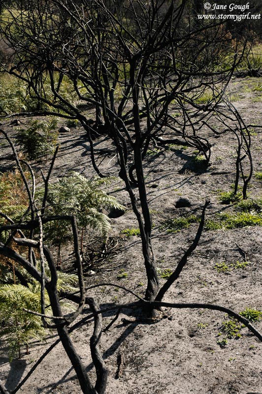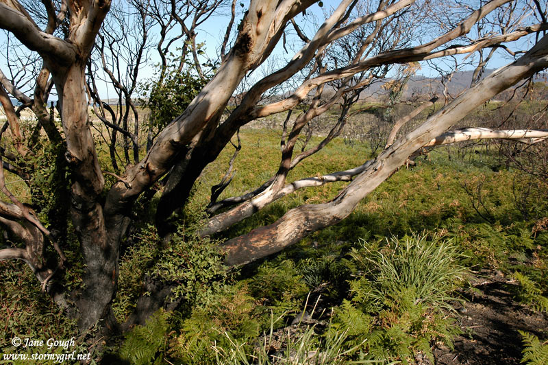 Continuing our journey along the Tasman HWY, we entered the area that was devastated by the bushfires in December earlier last Summer. The three images below were taken at Four Mile Creek, where on December 14th, four houses were lost when the fire burnt through approximately 2500 hectares of bush to the sea. Evidence is still strong in the canopy's of the eucalypts, however, the ground was covered in new ferns and grasses.