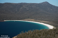 We spent the night in a beautiful old B&B in Swansea called 'Tubby and Padman', then had a fairly relaxing day meandering up the east coast. An early morning walk was on the cards at the Freycinet Peninsula as we tackled the Wineglass Bay Lookout. Suggested time for the walk is approximately 1 - 1.5 hours. 45 minutes to climb up the sometimes steep, rocky and slippery 600 odd 'steps', and 15 minutes to run down on the way back!! Once again we were graced with blue skies and calm conditions. The walk took us through 'The Hazards', the pinky granite mountain range on the Freycinet Peninsula. Upon arriving at the lookout, if the journey there didn't take our breath away (exhaustion), then the stunning scenery before us did!! There it was, one of the 10 most beautiful beaches in the world. Next time we're tackling the walk to the beach. Apparently, the name 'Wineglass Bay' came into fruition from the nineteenth century whalers, who carved up their catch in the bay, staining the water red.
