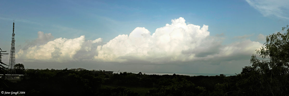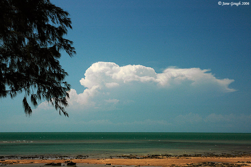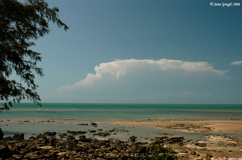 We couldn't drive terribly far today as the Hire car had to be returned, so instead we sat on the grass in the shade along the foreshore at Nightcliff, and watched 'Hector' develop over the Tiwi Islands. It was interesting to watch from when he started as a Towering CU to a mature thunderstorm. Just wish we could have been under it....