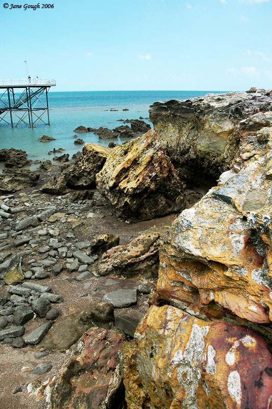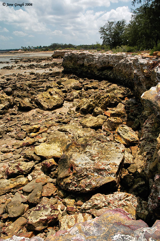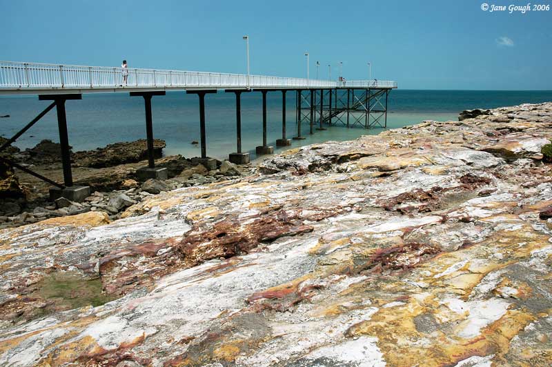 This morning's touristy activity was spent feeding the Milk Fish and Mullets that swarm Doctors Gully at high tide, and ambling around the Parap Markets.We also drove out to Palmerston and a little further down the road to Channel Island.