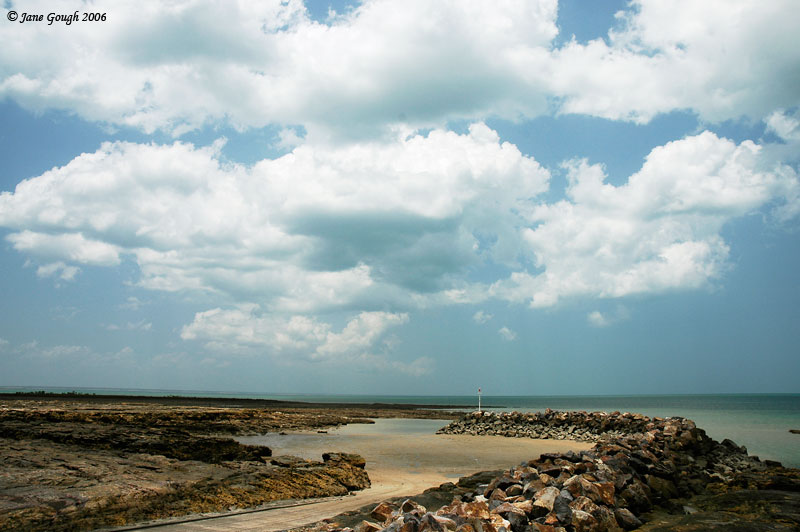 We picked up our hire car and began what was to become the search for a storm....or anything that remotely resembled a storm....or even some vague form of convection. Our search took us to the beach at Nightcliff for a walk......