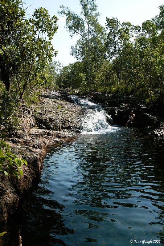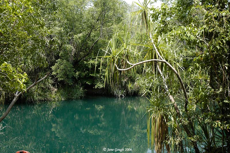 Today was spent sight seeing in the hope of catching some development 'somewhere'. We began our journey at the beautiful Berry Springs, where much needed relief was found in the cool clear waters of the spring.....complete with spitting fish!