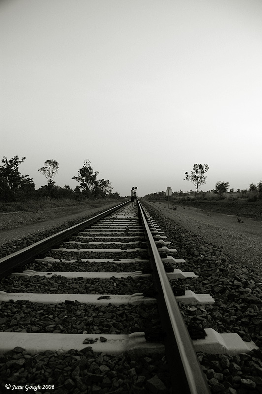 The storm less drive back into Darwin had us trudging through bush and scrambling along the train line to capture the termite mounds in the evening light, and the sunset.