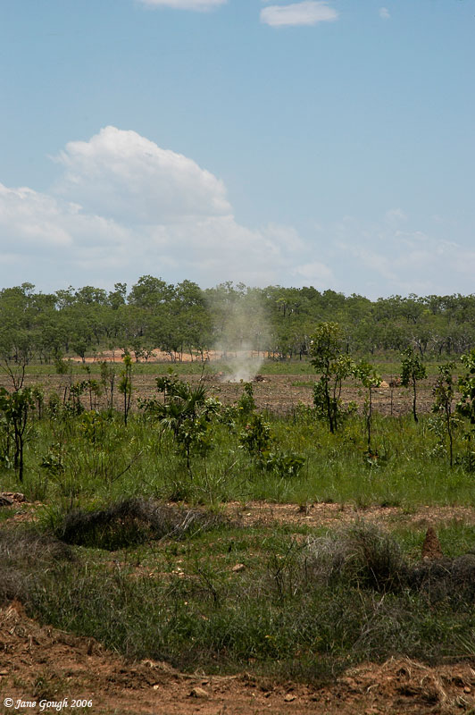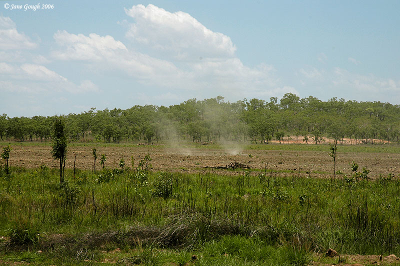 We began the long trek today towards Adelaide River and beyond, where speed limits are non existent! On the side of the road we made a mad dash to pull over as a 'tornado on the ground' was spotted in the paddock next to the HWY. Well, a dust devil actually, but the closest thing we were ever going to see to a tornado!